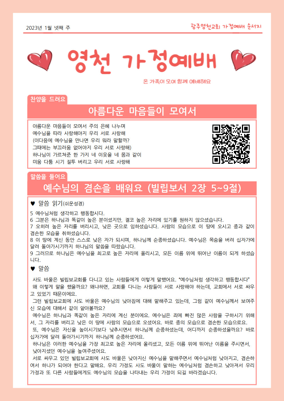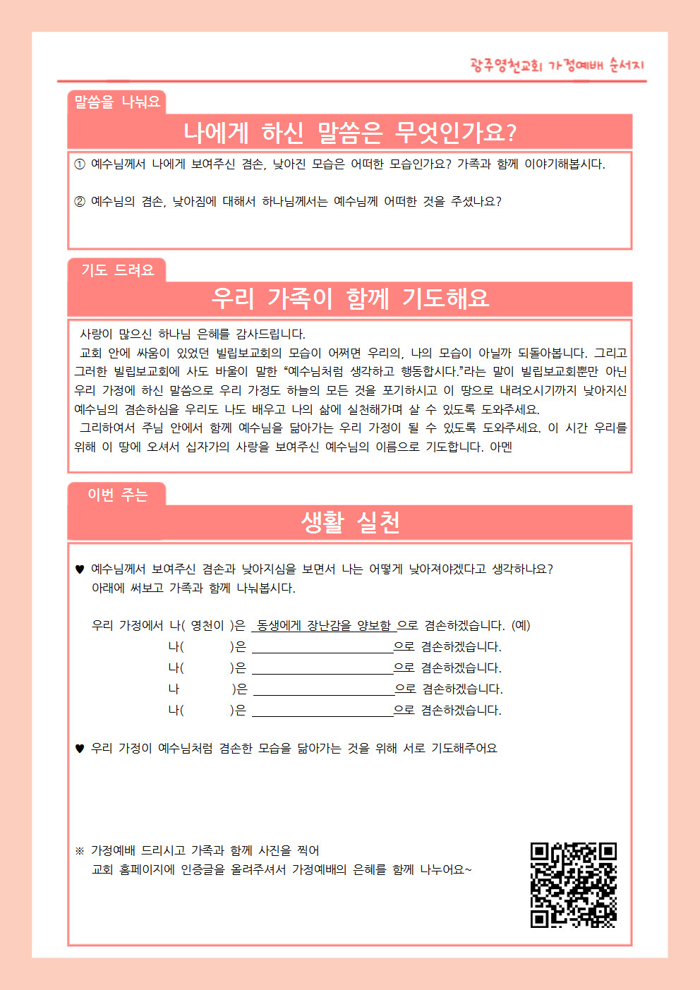1월 넷째주 영천 가정예배 교안입니다