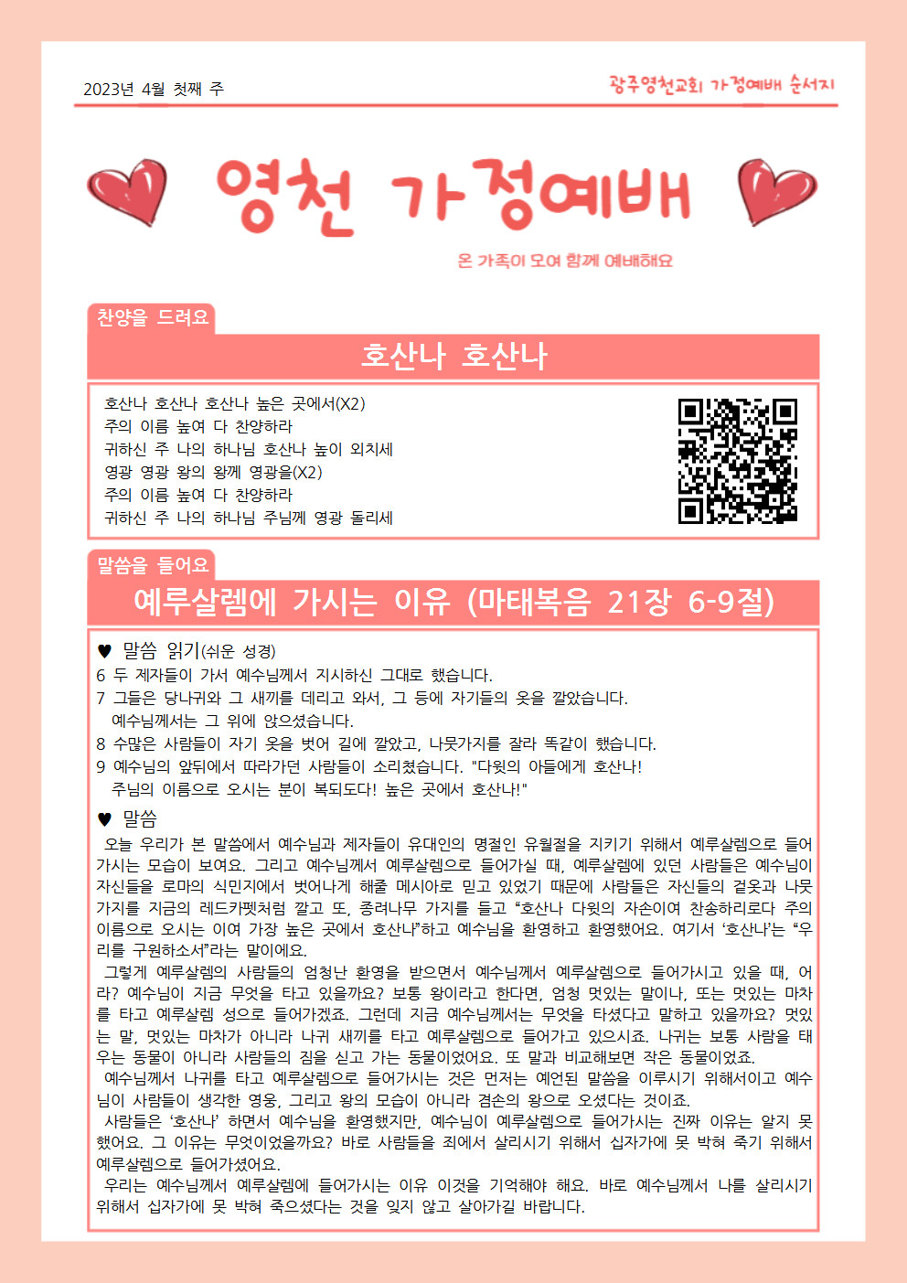 4월 첫째주 가정예배 순서지