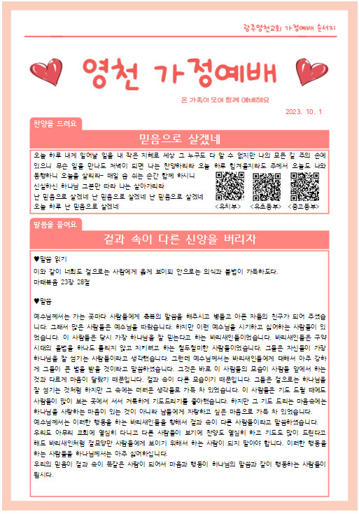 10월 첫째주 가정예배 순서지