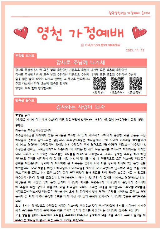 11월 넷째주 가정예배 순서지