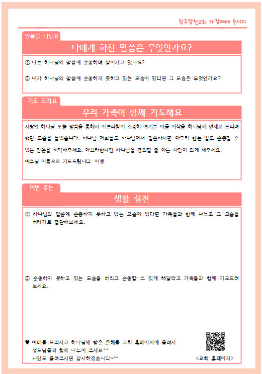 3월 셋째주 가정예배 순서지