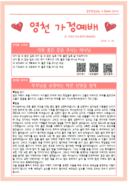 4월 넷째주 가정예배 순서지