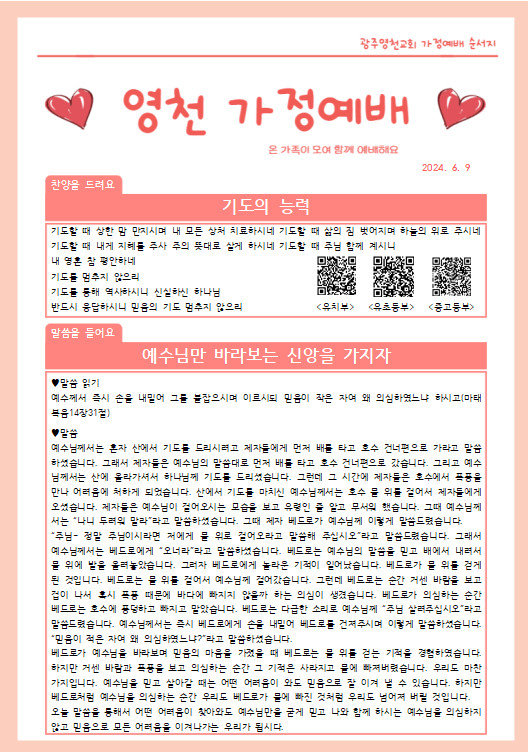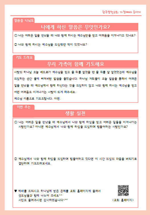 6월 넷째주 가정예배 순서지
