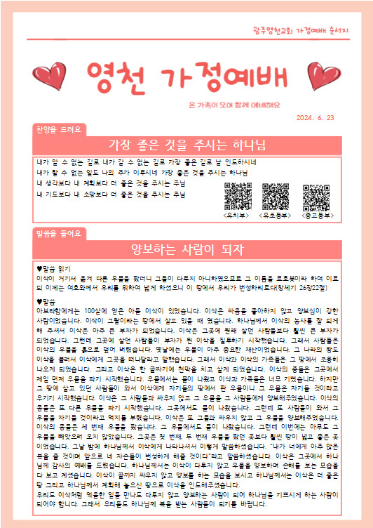 6월 넷째주 가정예배 순서지