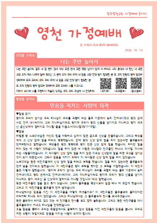 10월 넷째주 가정예배 순서지