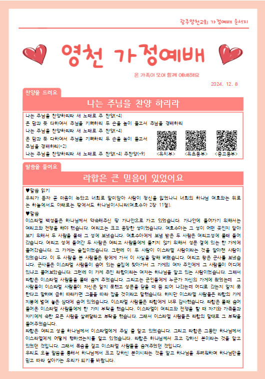 12월 둘째주 가정예배 순서지