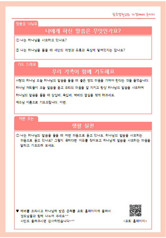 2월 첫째 주 가정예배