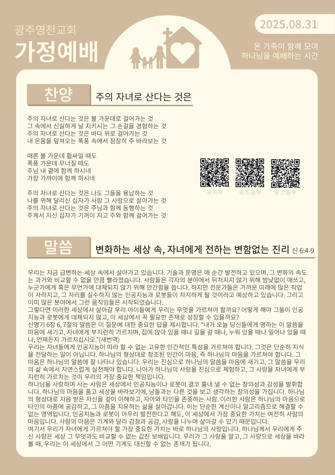8월 첫째 주 가정예배