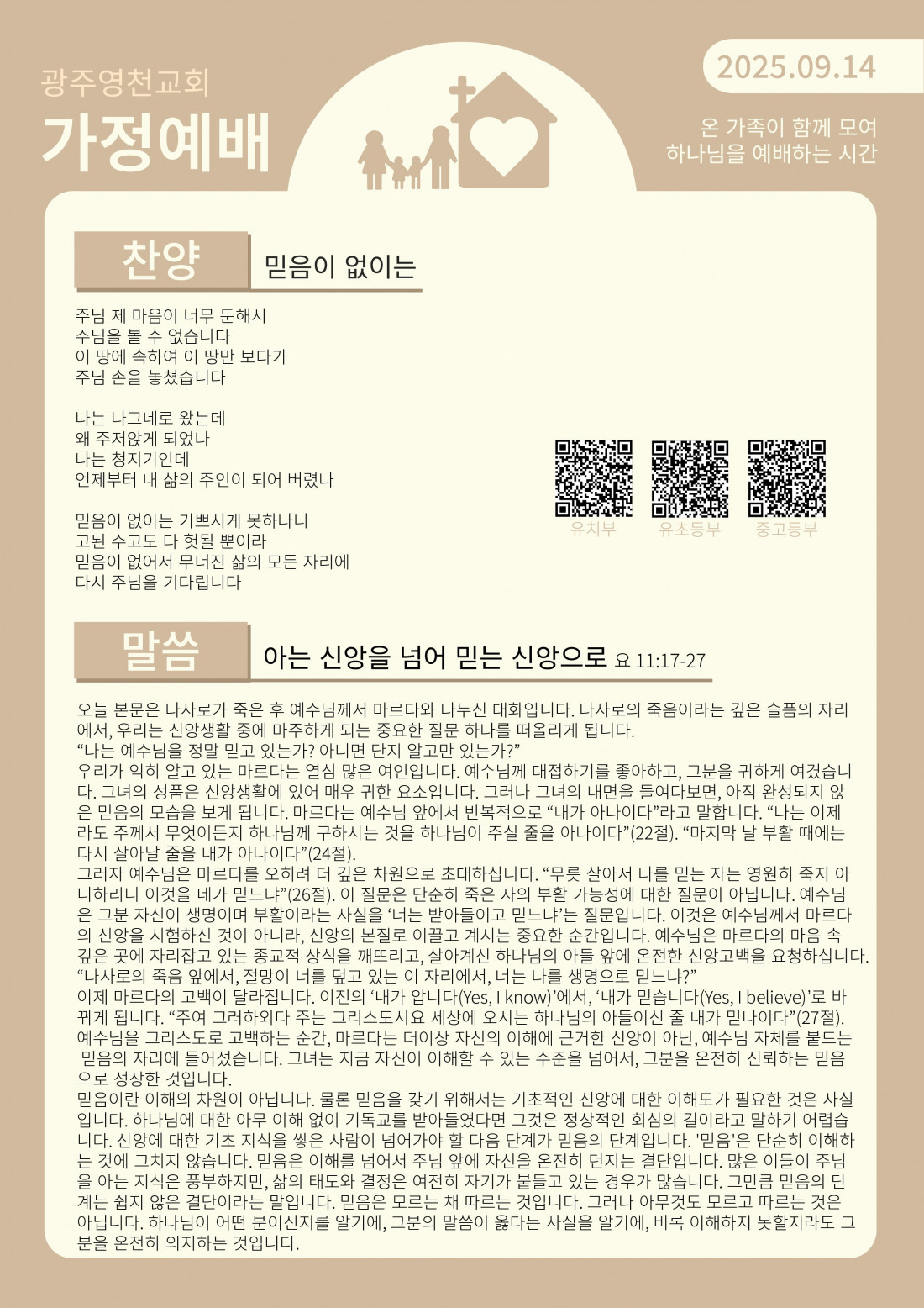 9월 둘째 주 가정예배
