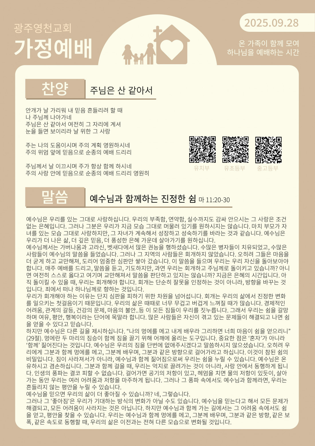 9월 둘째 주 가정예배