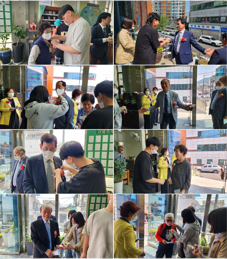 어버이주일을 맞이하여 중고등부에서 카네이션을 달아드렸습니다.
