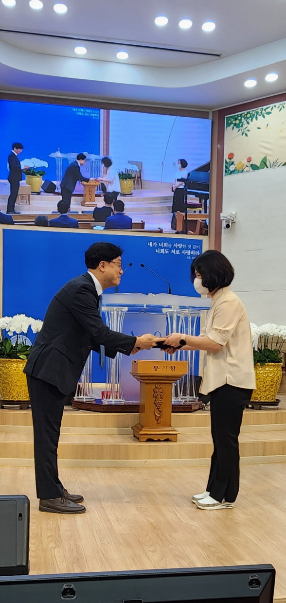 10년근속 : 리 철안수집사, 김현주안수집사, 김선아권사, 정윤경집사
