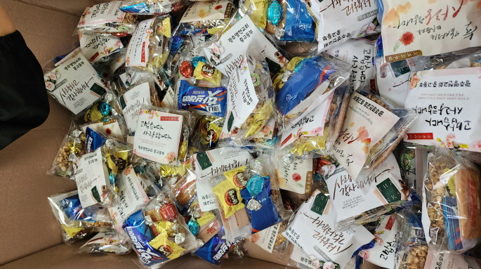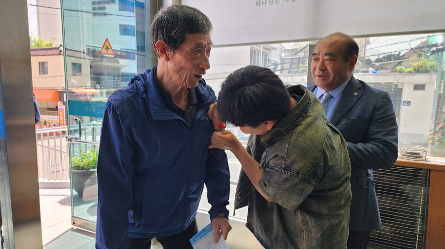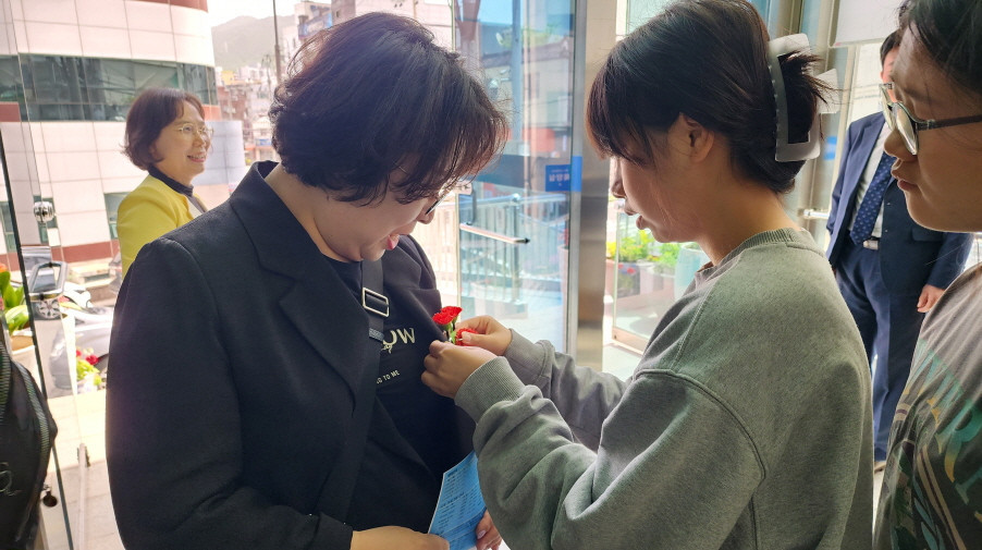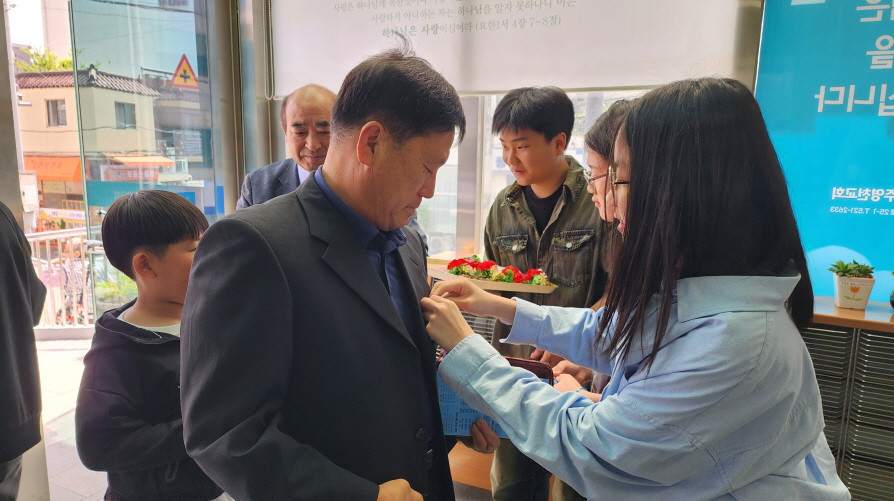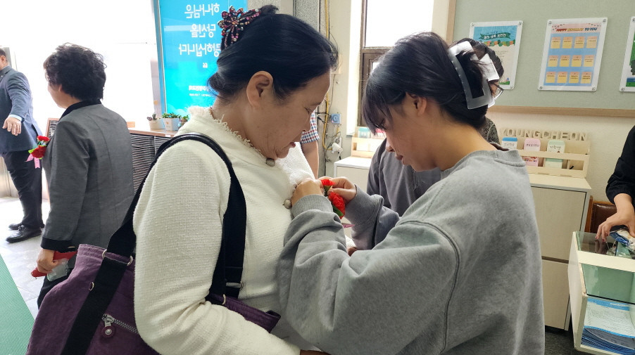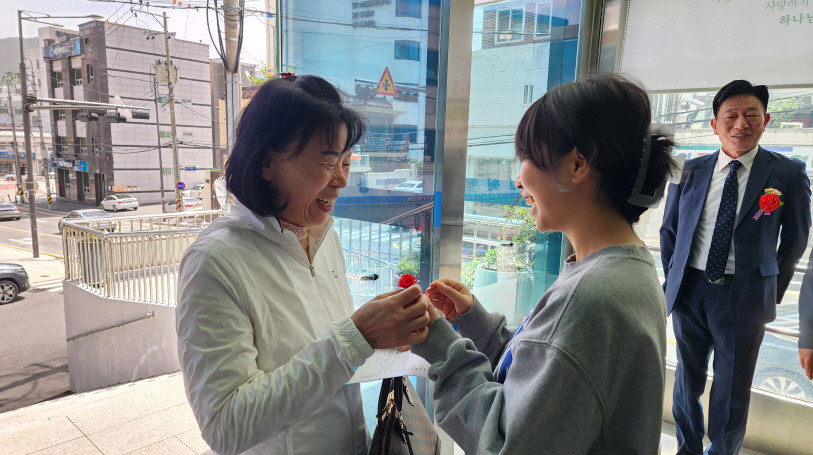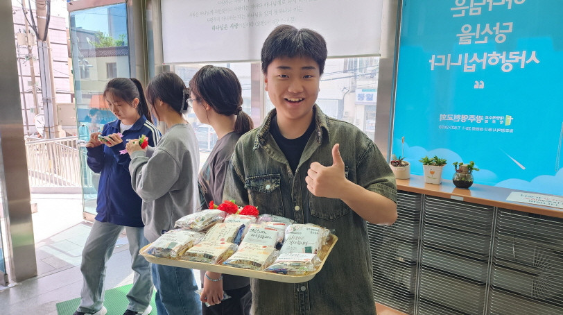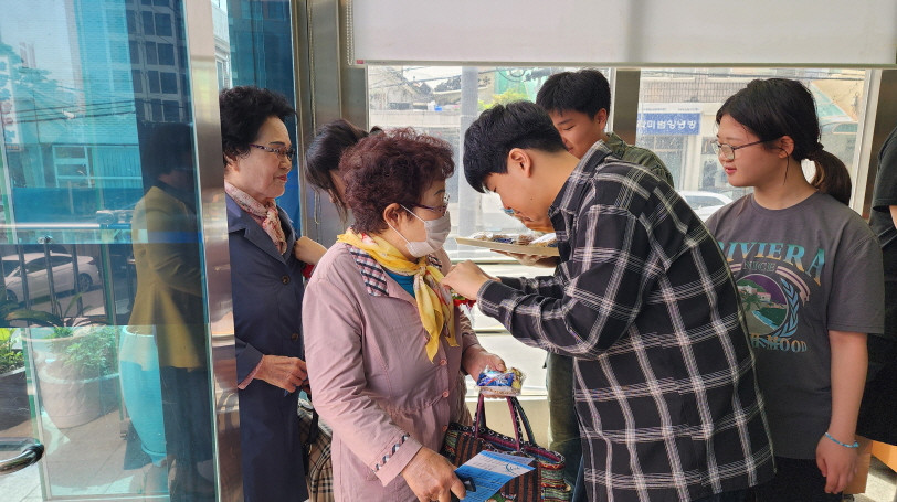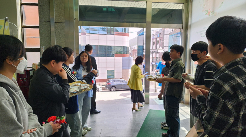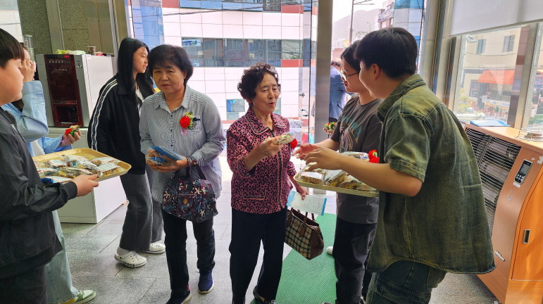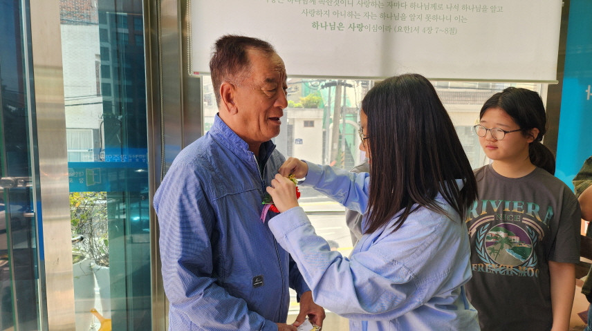 어버이주일을 맞이하여 중고등부에서 성도님들께 카네이션과 함께 조그만한 선물을 전달하였습니다.