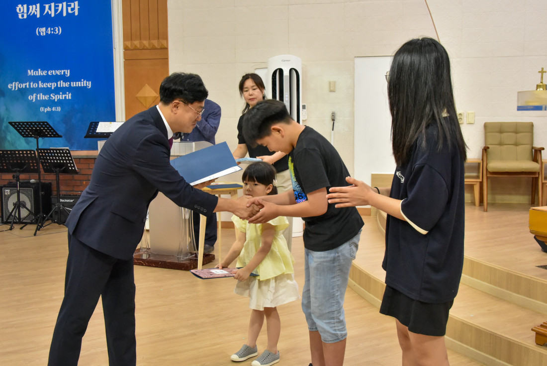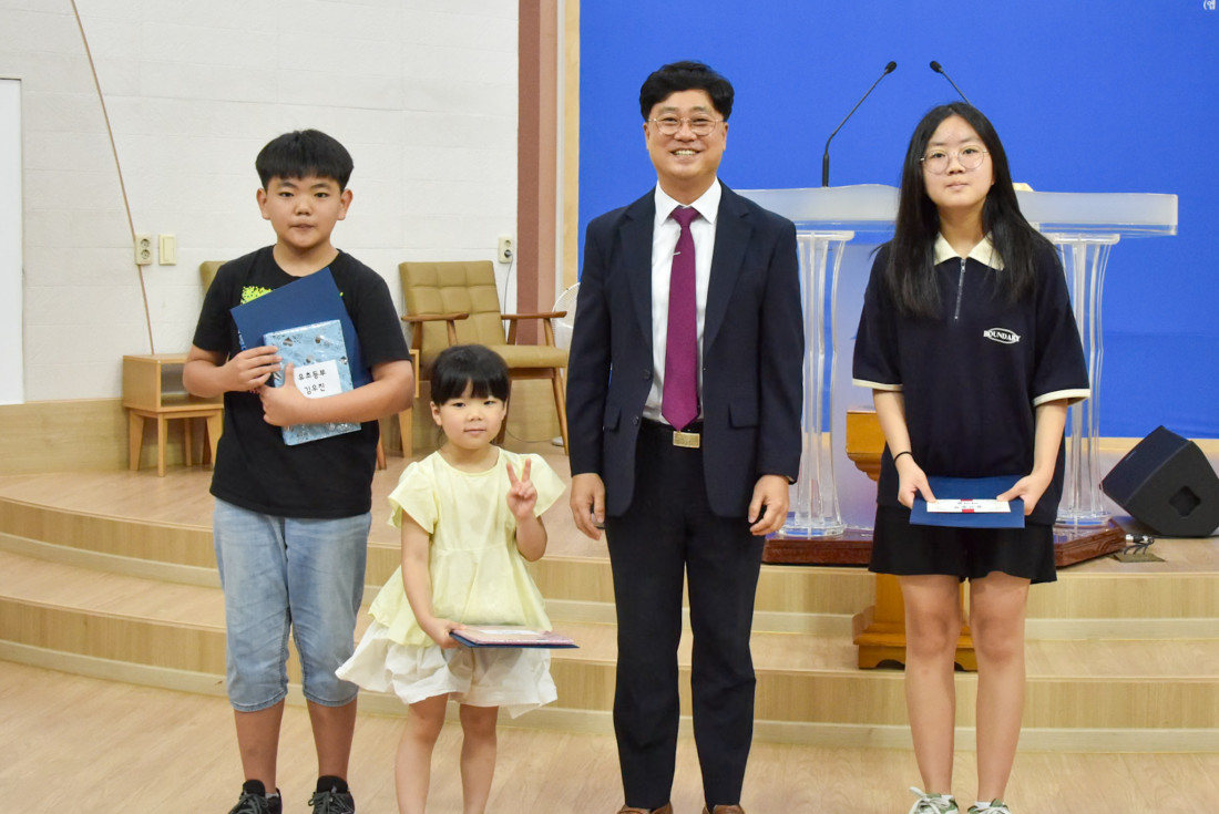 대표학생으로 유치부 김유민, 초등부 김우진, 중고등부 이서윤학생이 시상했습니다.