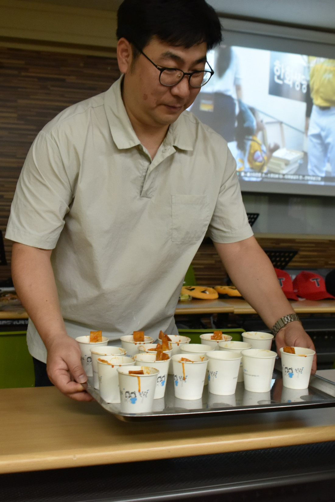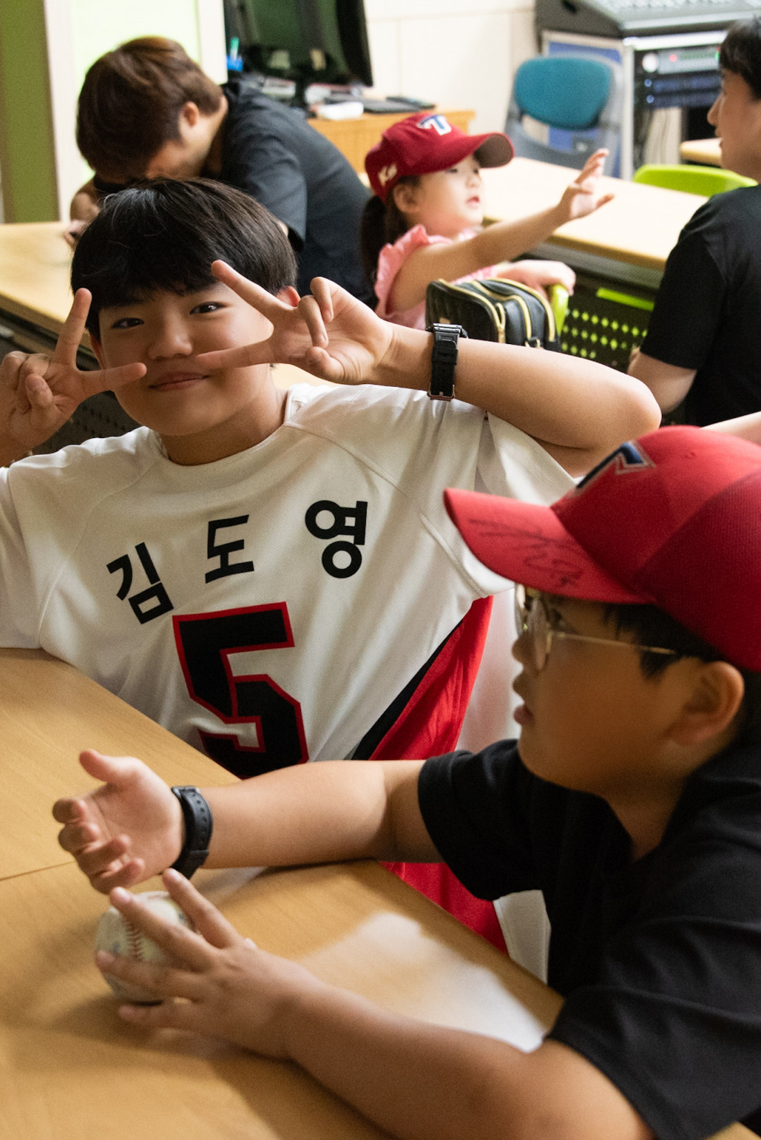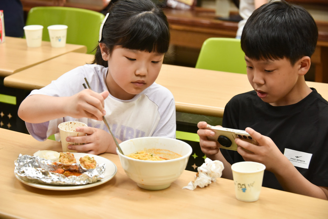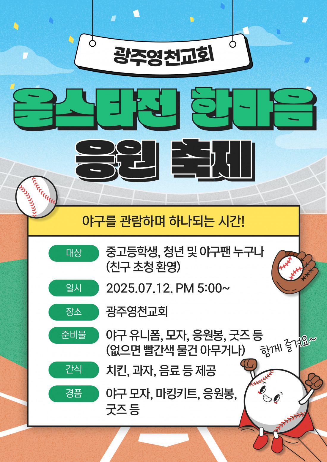 중고등부실에서 2025년 야구 올스타전을 보았습니다. 목장의 아이들과 새친구들이 함께 모여 간식을 먹으면서