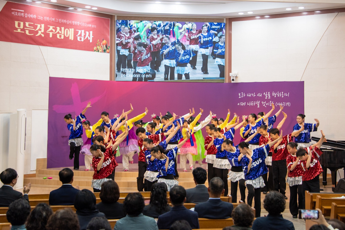 하나님을 찬양하는 광주 극동방송 어린이 합창단의 찬양과 율동은